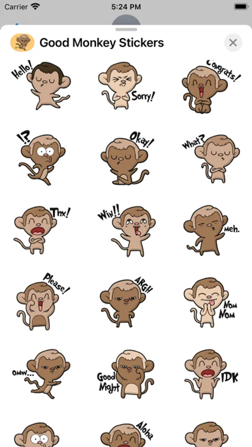 Good Monkey Stickers is full of funny emotions for you to share with friends and family through iMessage!