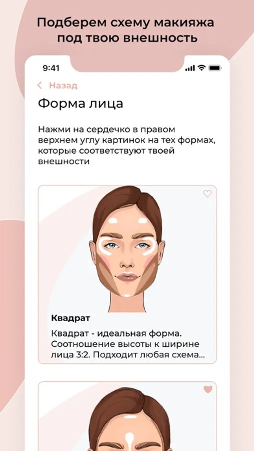 7) Выбери свою форму лица, посадку и форму глаз, чтобы получить индивидуальные схемы макияжа для лица, глаз и бровей.