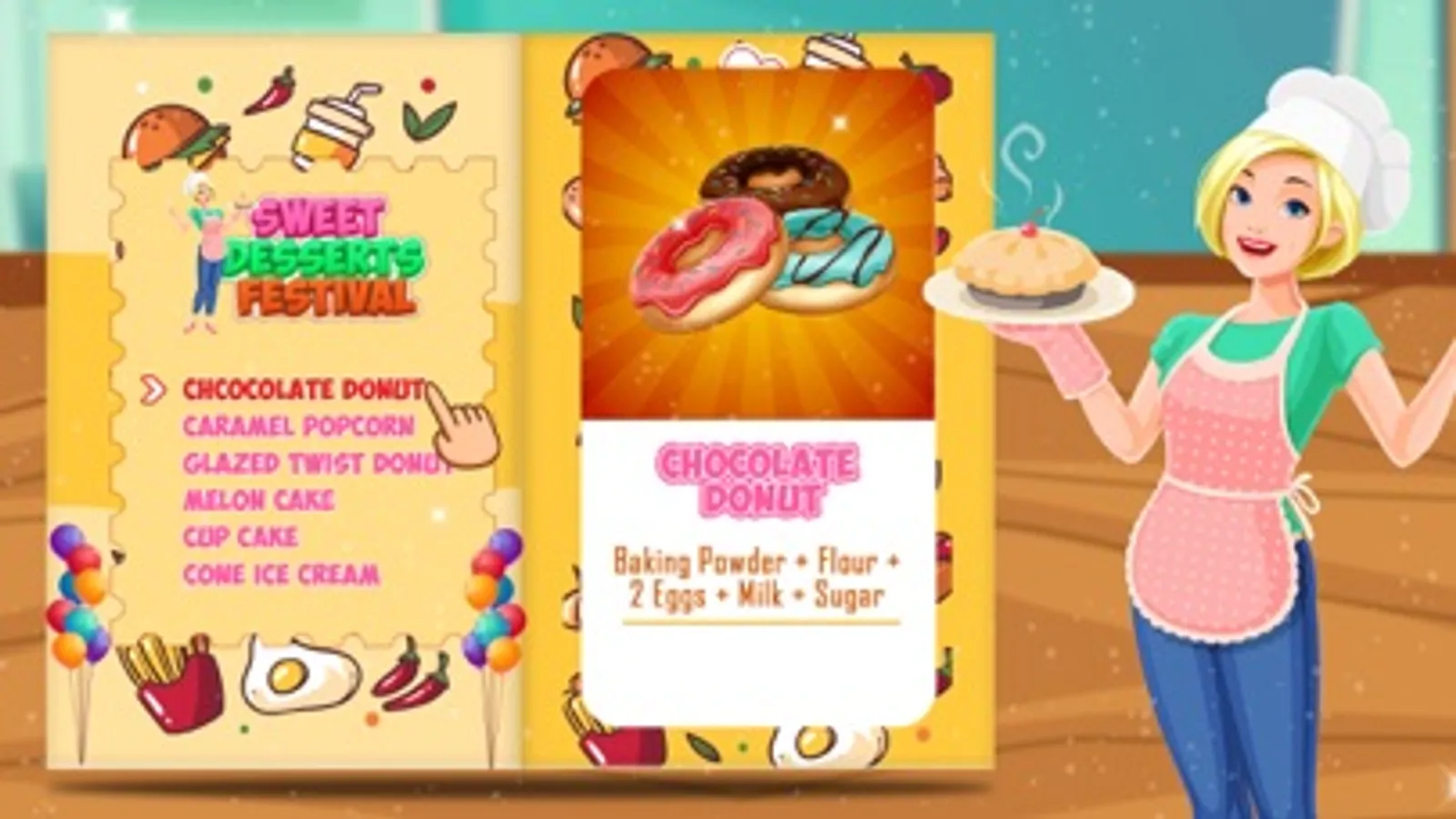 Channel your inner sweet desserts maker when you open the sweet food cooking recipes book. Sweet recipes fun cooking game brings you the collection of the largest food cake baker bakery cake recipes around the whole world. Be the best dessert chef in this ice-cream sandwich bakery cooking game. Do you love cooking bakery things and want to become the best bakery chef? You will definitely be tempted to eat your desserts first. Make sure your sweet desserts turn into the prettiest in all donuts, cupcake and bakery food games.