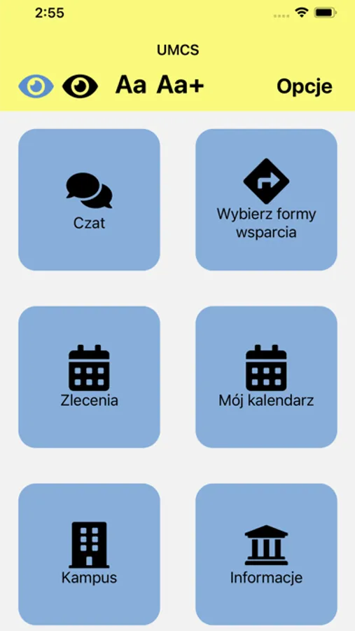 Głównym celem jest usprawnienie procesu organizacji form wsparcia dla osób ze szczególnymi potrzebami oraz komunikacji z Zespołu ds. wsparcia osób z niepełnosprawnościami UMCS, asystentami, osobami zapewniającymi wsparcie psychologiczne, tłumaczami języka migowego oraz innymi podmiotami współpracujących z Zespołem ds. Wsparcia. Aplikacja umożliwia: