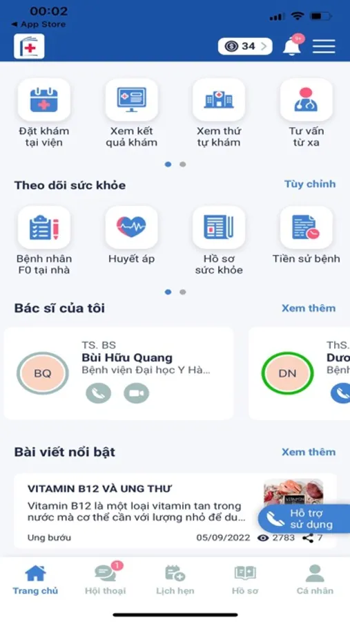 Ứng dụng Y tế từ xa My HMUH là ứng dụng dành cho bệnh nhân, hỗ trợ quản lý sức khỏe cho bệnh nhân và người thân với các tính năng nổi bật: