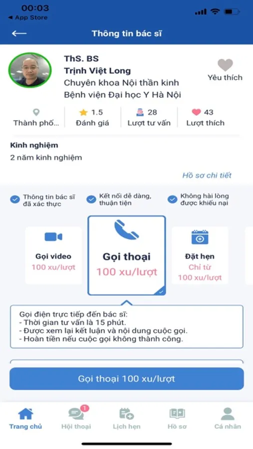 - Gọi điện, nhắn tin để nhận tư vấn từ các bác sĩ hàng đầu trong nước.
