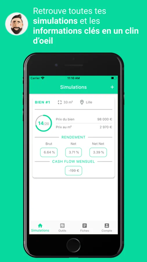 - Des outils de calculs rapides à portée de main pour simuler rapidement les mensualités d’emprunt, la capacité d’endettement, les frais de notaire et la revente de votre bien