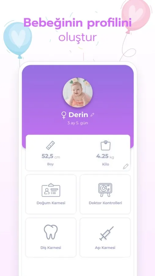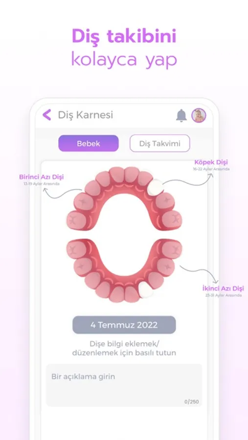 - Doğum, aşı, diş randevuları takibi ve hatırlatıcısı