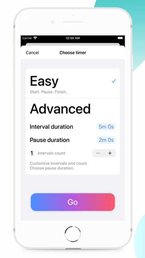 You can create any type of exercise, with a regular or interval timer, with or without rest intervals, as you like.