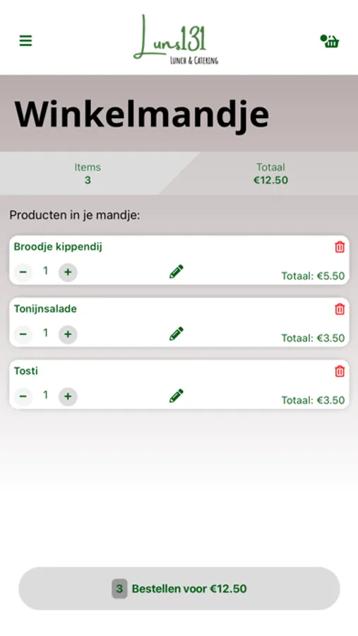 Waar u ook bent, met de app van Luns 131 kan u zonder zorgen bestellen uit het uitgebreide assortiment.