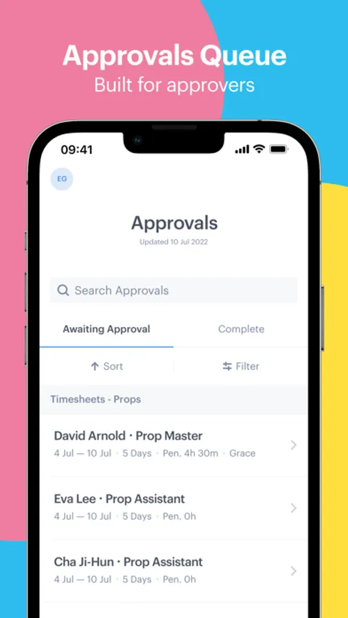 • Approvals Workflow - Quickly approve/reject and comment on your crew's timesheet submissions.