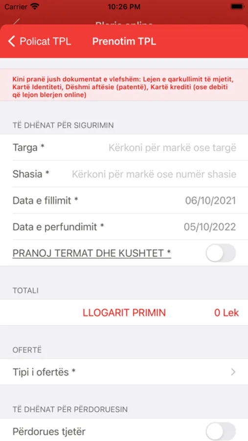 • TPL (sigurim i detyrueshëm) – Siguracioni i detyrueshëm vjetor i mjetit me targa shqiptare, për qarkullimin Brenda territorit të Shqipërisë.