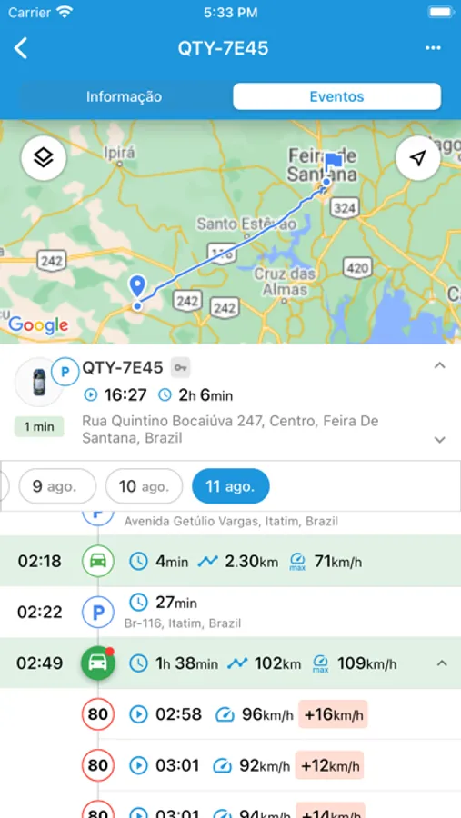• Controle seus veículos pela velocidade da via, acesse relatórios contendo histórico de eventos para controle.