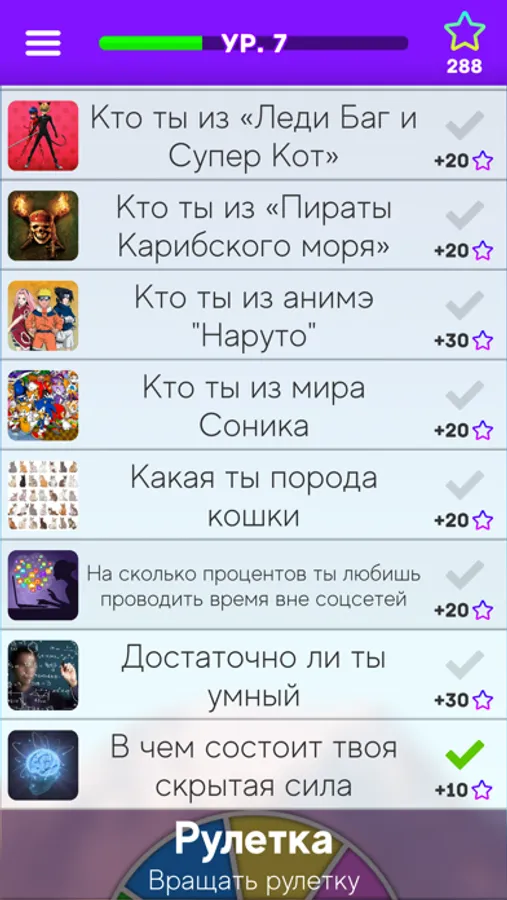 Выбирай тесты, которые тебе более интересны или пройди их все, чтобы узнать себя лучше! Предложи пройти тест своим друзьям и знакомым, и ты обязательно узнаешь о них что-то новое!