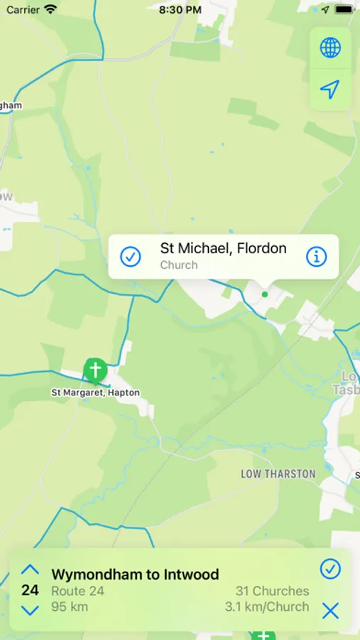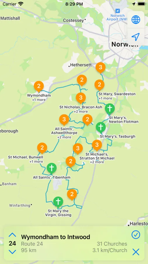 The NCCR app allows you to view all the routes on one map and see detailed directions and tips for each route. Mark churches as visited and learn about their history. Filter and sort routes to help you choose your next cycle ride and search for churches and locations you want to visit.
