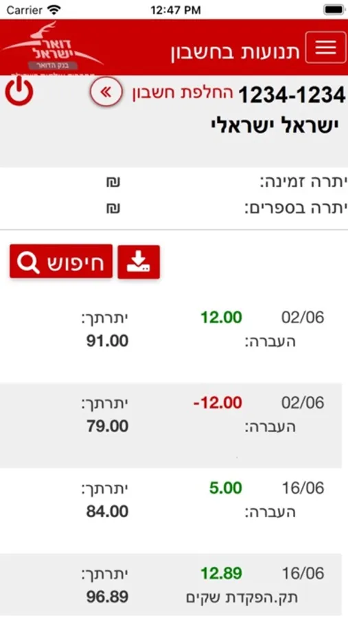 אפליקציה לניהול חשבון בסלולרי , הכוללת אפשרות ביצוע פעילות פיננסית ייחודית של בנק הדואר .