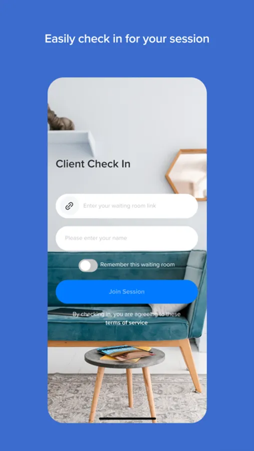 Your therapist will provide you with a link to their waiting room. Simply follow that link, enter your name, and you’ll be checked in and ready for your session.