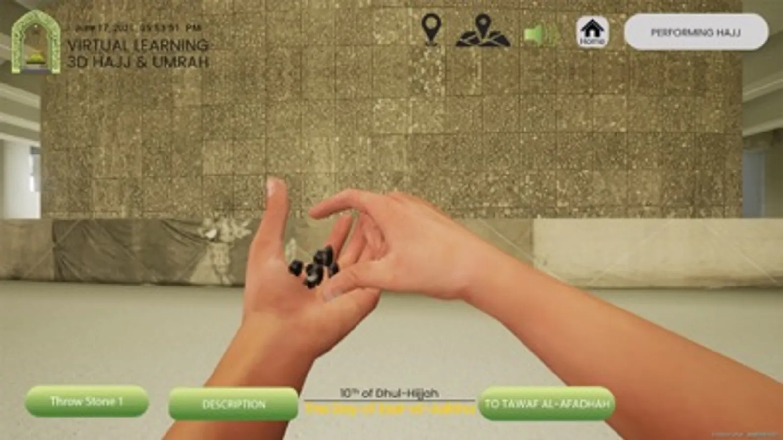 The project is about Virtual learning, Three dimensional, Multilingual and Multi-platform for Hajj and Umrah aims at training users how to perform the rituals of Hajj and Umrah properly, and reduce the common mistakes made by people in the pilgrimage as far as possible, learning step by step techniques using three-dimensional models and virtual reality, and also seeks to show the non-Muslims who cannot visit the holy places, the sense of the pilgrimage.
