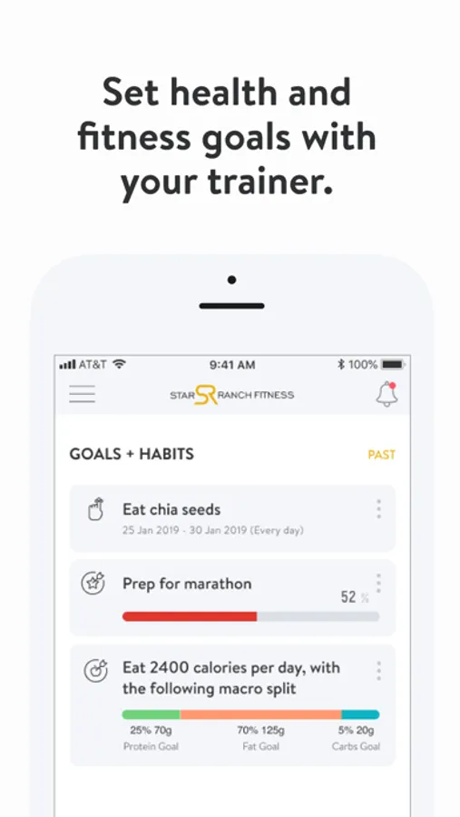 With the Star Ranch Fitness App, you can start tracking your workouts and meals, measuring results, and achieving your fitness goals, all with the help of your personal trainer.