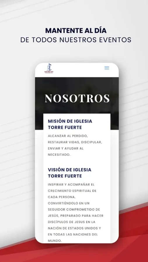 Accede a la aplicación móvil de Iglesia Torre Fuerte. Conéctate con ellos vía mobile e internet. Recibe las últimas prédicas, fotos, eventos y noticias de tu iglesia — en cualquier momento y cualquier lugar.