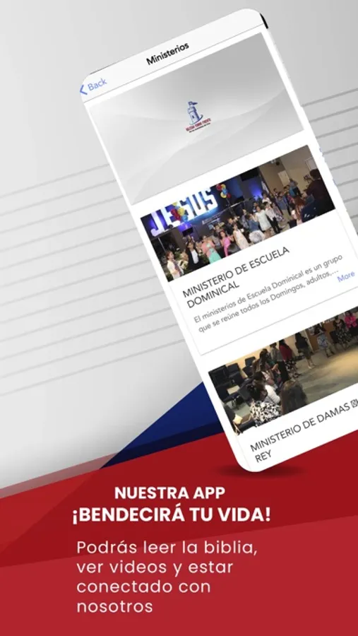 * Ver e interactuar con los eventos y ministerios.