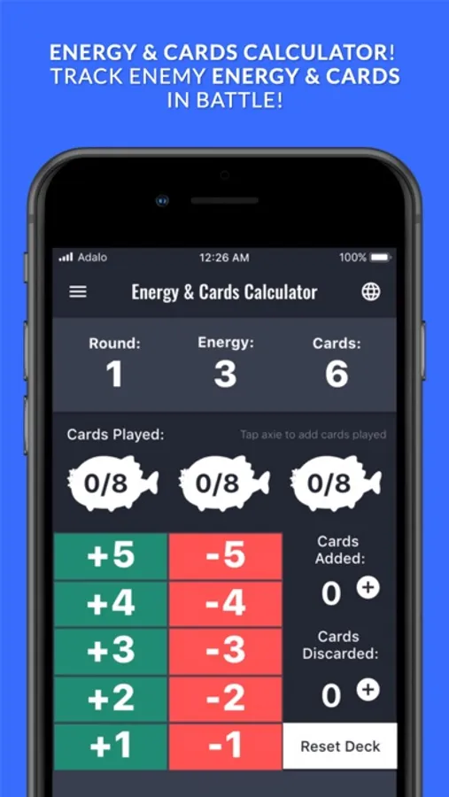 Keep track and know exactly how much energy your enemy has during battle! Track enemy axie cards played and know your opponents current cards in hand during battle!
