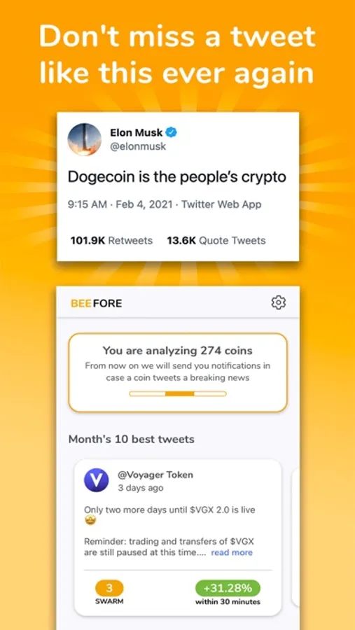 We bypass the whole chain that a breaking news has to follow. Think of reporters who see a big coin announcement, they have to write the article, check it out, and publish it. Instead we notify you directly of the official tweet in less than 1 minute from its creation!