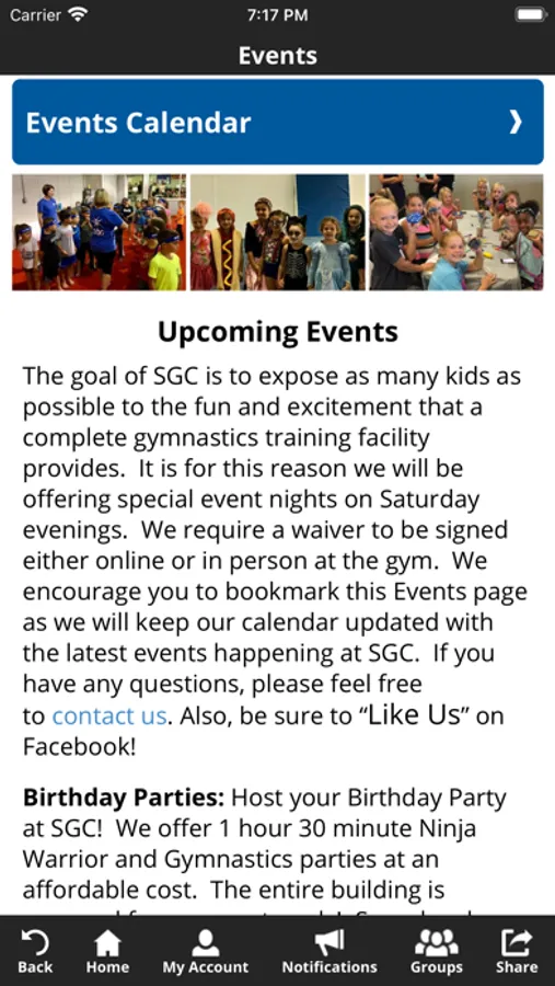 The Springfield Gymnastics Center app allows you to manage your account with ease, register for classes, parties and special events. You'll also receive important notification about class changes, closings, registration openings, special announcements, and upcoming events.