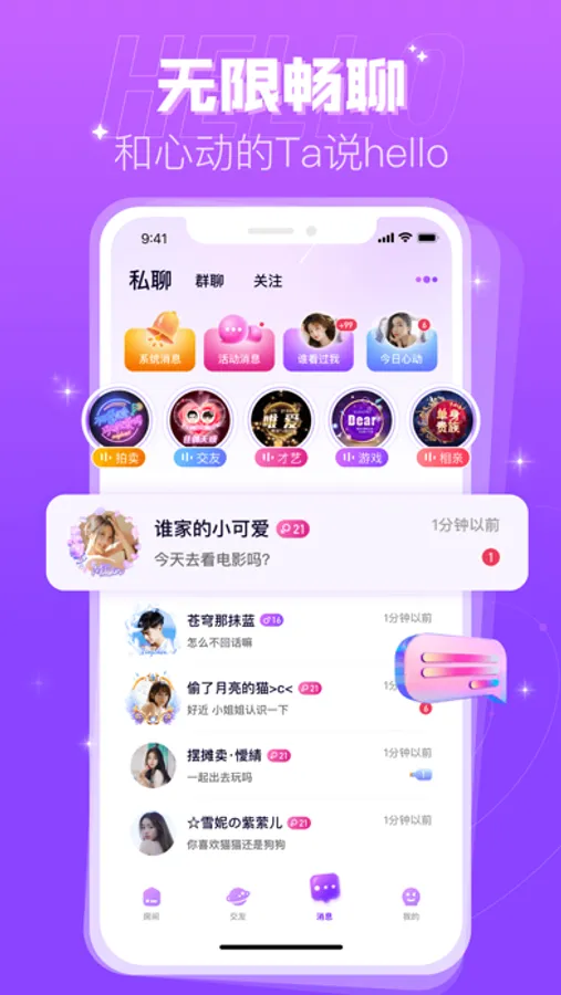 相亲、娱乐、交友、处cp,24小时在线聊天室,声音控、颜值控都能在蜜趣平台找到心仪玩伴。