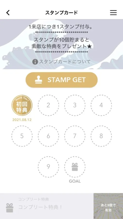 たくさん貯めていただくと次回使える特典をご用意しております。
