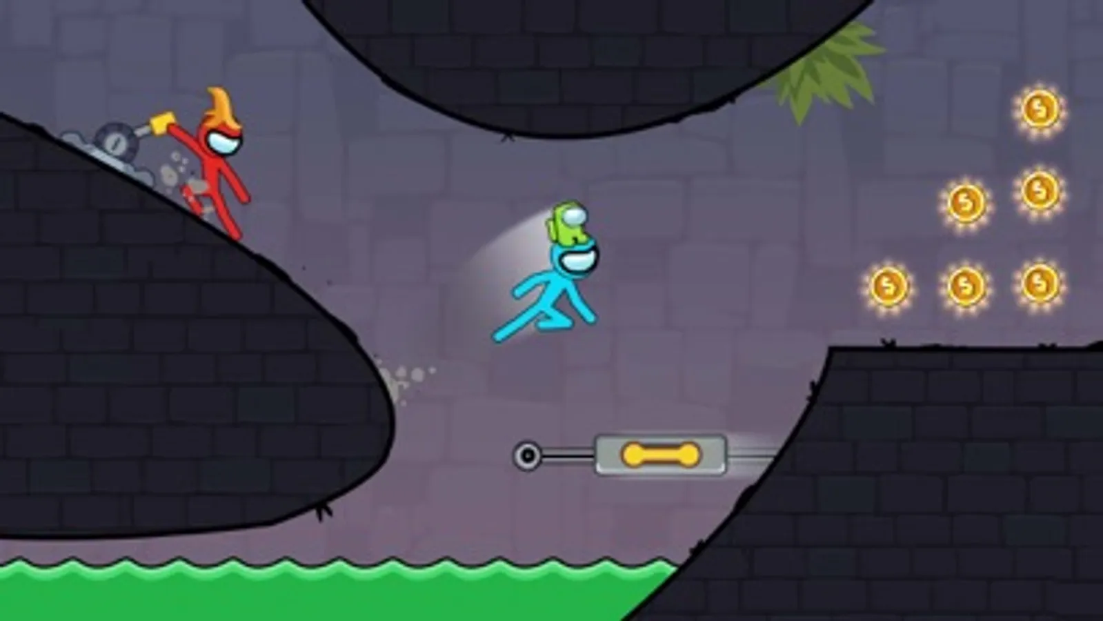 Stickman Red And Blue is an addictive puzzle game where you have to embody both characters. Control both stickmen at the same time and use the buttons to move, push boxes, and collect coins to find the exit in the jungle.