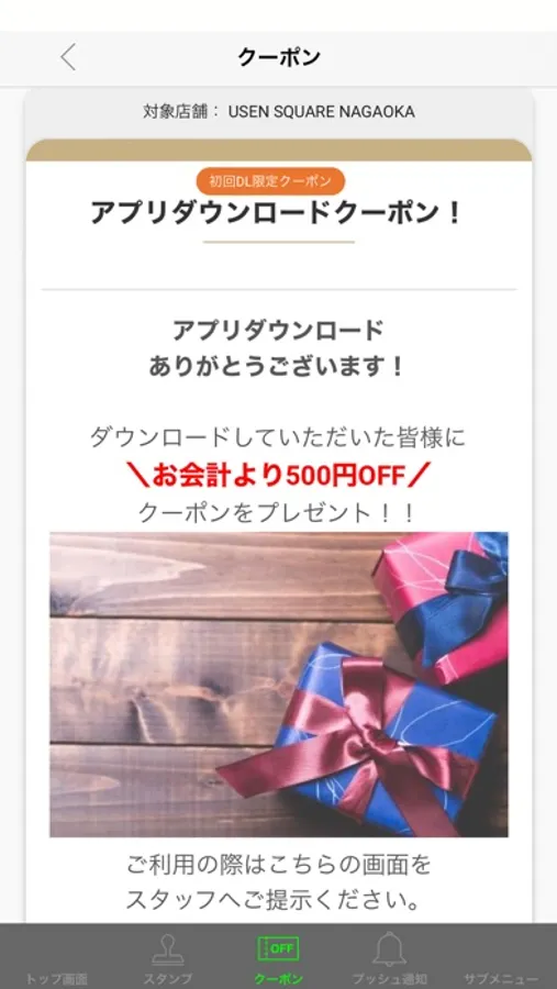 最新のお知らせはもちろん、限定のお得情報がアプリに届きます。