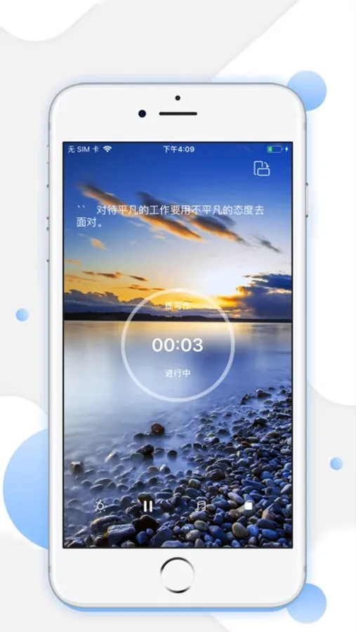 您可以为进行中的目标设置屏幕常亮,遇到突发还能点击[暂停],还能放一首喜欢的音乐激励自己完成目标。