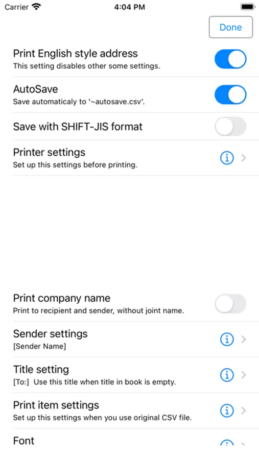 - Customize address book format