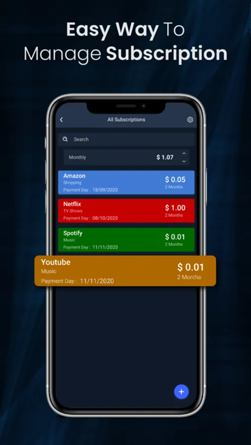 Manage Digital Subscription, Credit Card Subscription, Money Out Flow