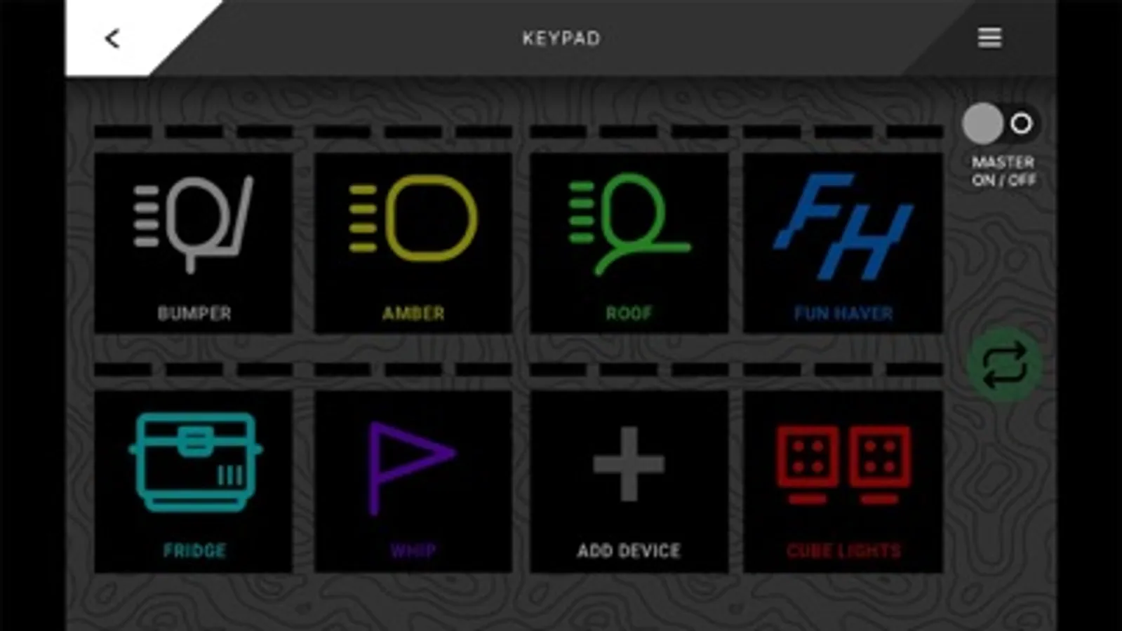 -Assign virtual or physical keypad buttons to each powered accessory for seamless operation
