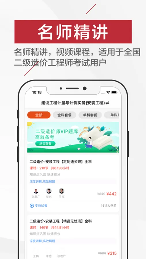 名师精讲,视频课程,适用于全国2021二级造价师考试用户;