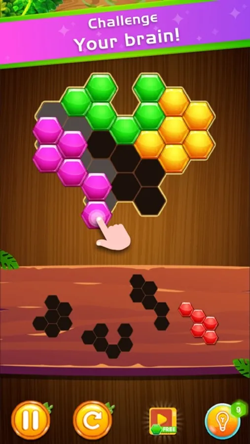 Brain teasers is a unique puzzle game that makes you think of a different approach to solve a puzzle. Charge up yourself by filling the blank board and fit the shape into the honeycomb board. Every completion of the level will increase the hardness of the game. Challenge yourself and be a master of brain teasers puzzles.