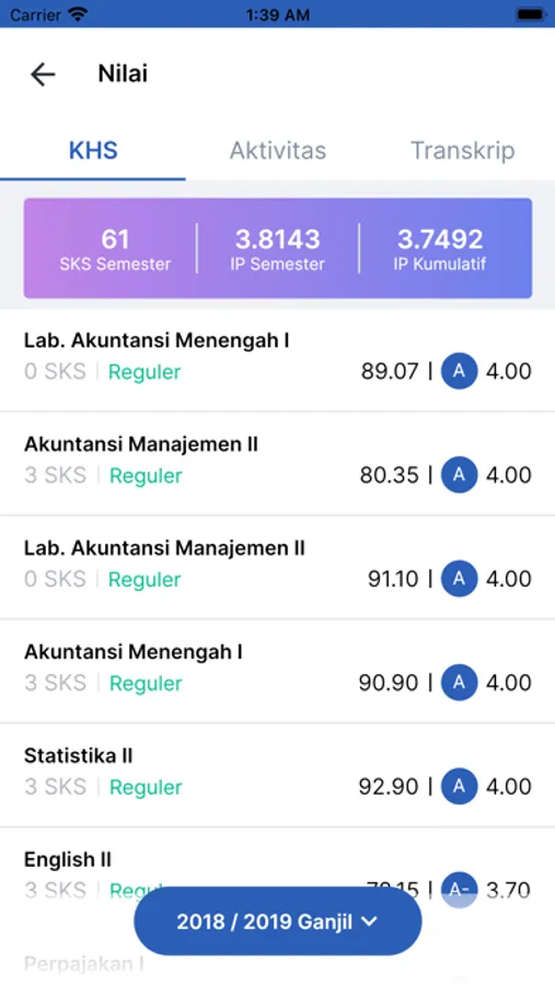 Pada versi terbaru fitur utama yang telah dapat digunakan oleh mahasiswa adalah:
