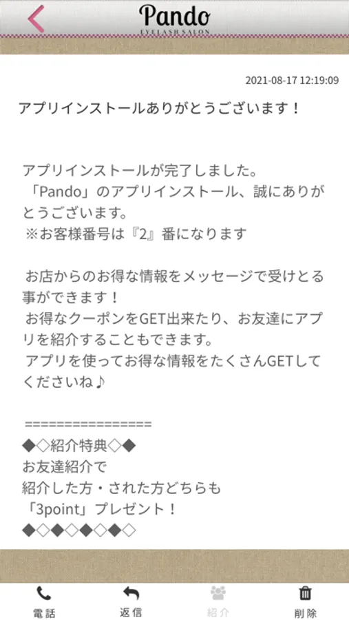 マツエク パンドのアプリをSNSを通じてお友達に紹介する事ができます。
