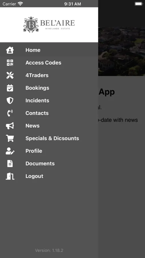 Bel'aire Resident's App for generation of access codes and access to estate news broadcasts.