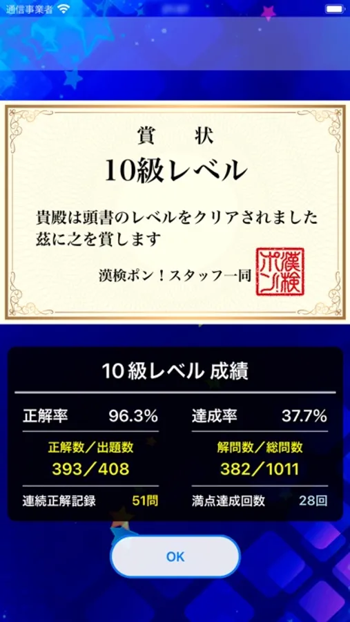※このアプリ内での成績や評価に関する全ての表現は、漢検の合格を保証するものではありません。また、実際の試験問題とは問題文や出題形式が異なりますのでご了承ください。
