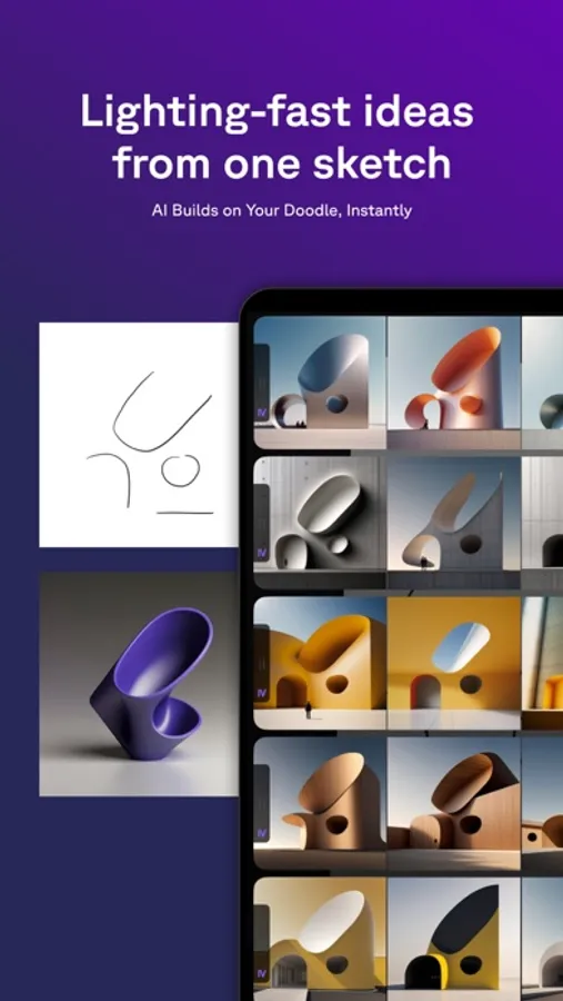 Create dozens of design variations from a single sketch in seconds. Hypersketch keeps pace with your imagination, helping you explore creative breadth without losing momentum.