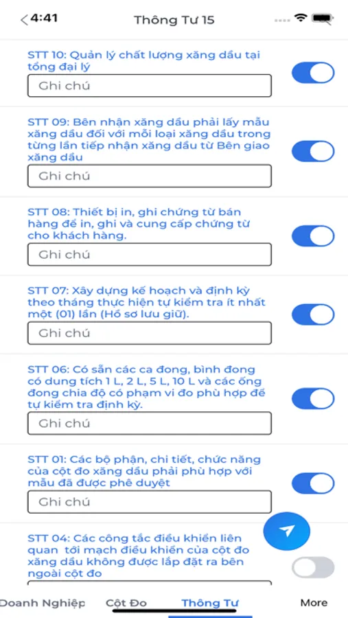 - Khi đến ngày cần kiểm tra kết quả doanh nghiệp xăng dầu người dùng có thể dùng ứng dụng này để cập nhật kết quả kiểm tra vào hệ thống.