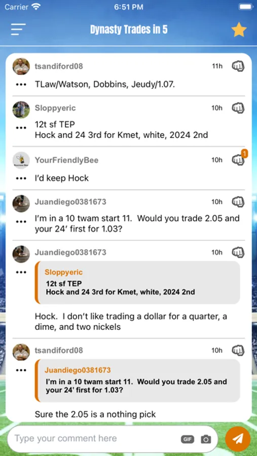 Dynasty Pandemic is an online community where you can chat strategy live with other fantasy players, podcasters and industry leaders. Have a trade question? Post it on the community Chatter and get feedback from your peers and experts! Download today to actively participate in the community and start building dynasties!