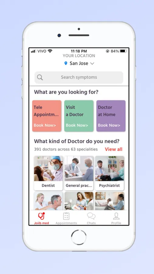 Book appointments for diabetes, cancer, weight loss, hair loss, ENT issues and more. Joiib med offers consultations for more than 60 specialties, including psychology, physiotherapy, gynecology, dermatology, gastroenterology, dentistry, orthopedics and homeopathy.