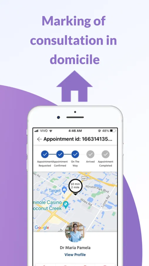 Book a preferred health service directly from your mobile. Check the necessary details and schedule a Doctor's visit to provide health services in the comfort of your home. Follow the doctor's arrival for the scheduled appointment.