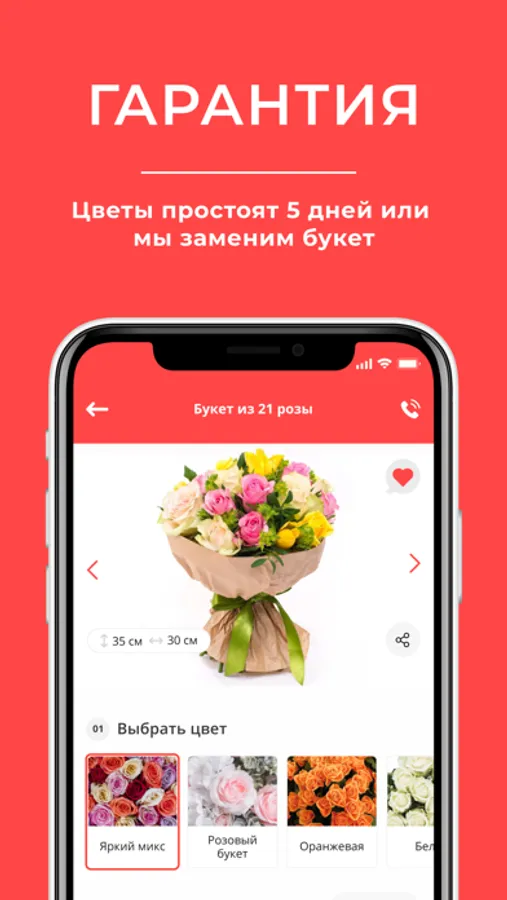 - Качество: мы сотрудничаем с лучшими поставщиками и гарантируем свежесть наших букетов. Цветы простоят 5 дней, или мы заменим букет.