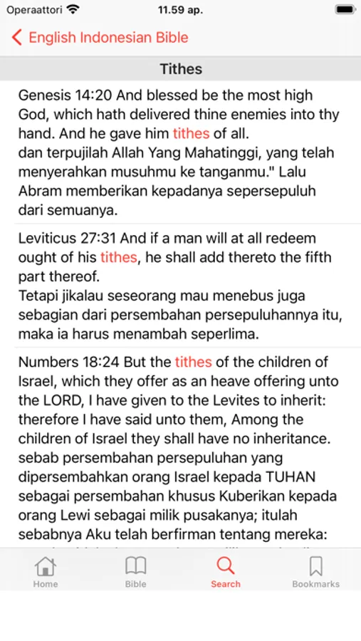 An English with Indonesian Alkitab parallel version Holy Bible that is completely offline. This is the only Bible app you'll need when attending a church service or personal devotion. You can highlight, copy, bookmark or share verse(s).