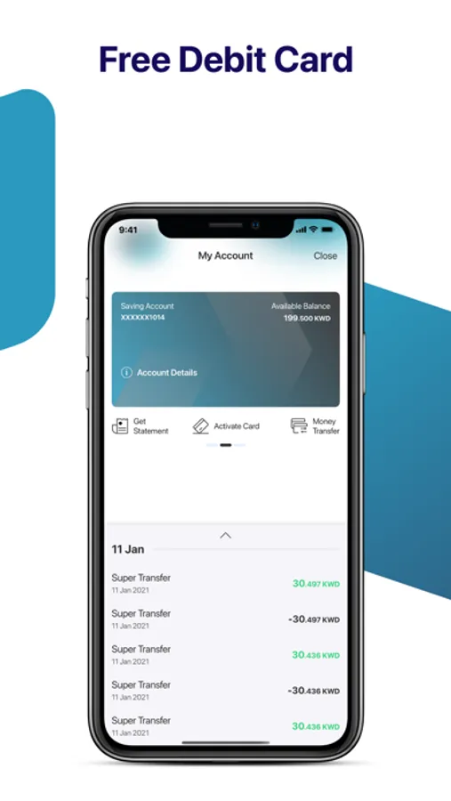 Request your free debit card through the app and have it delivered to you. Your card can be used at shops, ATMs and online purchases.