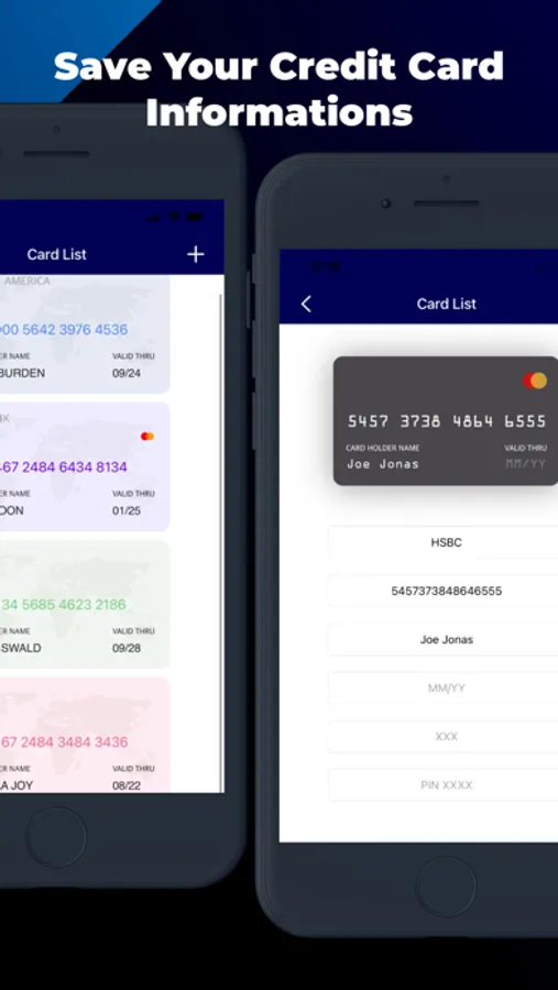 Bank Cards - Save your credit and debit card informations in the Secret Vault.