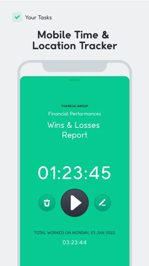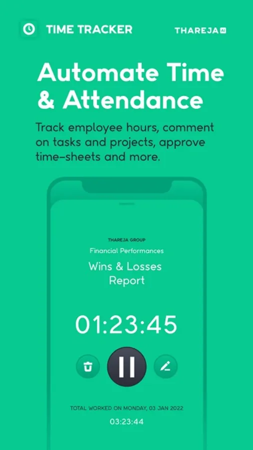 Whether you're working as a freelancer, an employee, or as a manager of many employees, the Thareja Time tracker makes it evident to understand how your time or your team's time is being spent. No more calculation work, no more worksheets, and no more pen and paper logs.