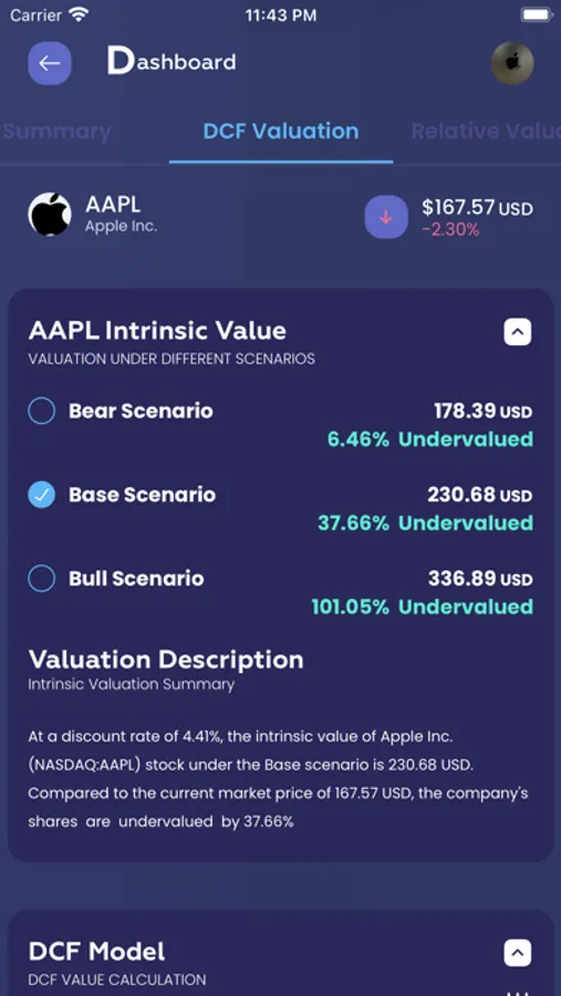 Intrinsic Value (iVALUE) measures the value of a stock based on its company's cash flows. Where market value tells you the price other people are willing to pay for an asset, intrinsic value shows you the asset's value based on an analysis of its actual financial performance. Based on the assumptions of the user, iVALUE will inform the user if the stock is undervalued or overvalued in the market.