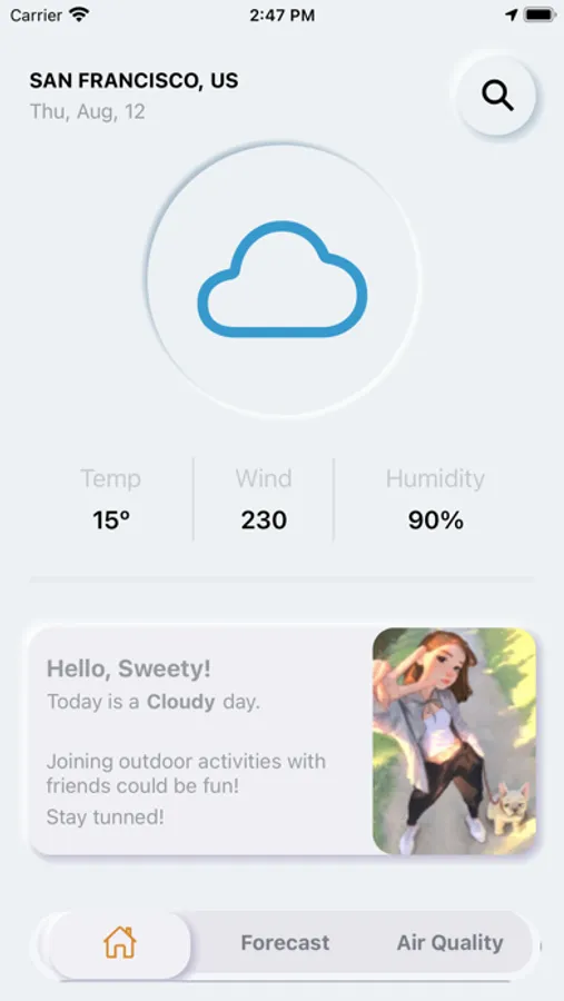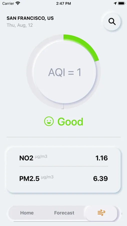 -AQI alerts: alert for air quality in the chosen city along with NO2, PM2.5 data. It allows you actively protecting your health from air pollution.